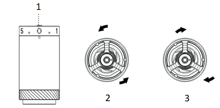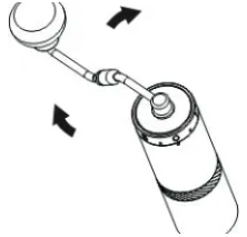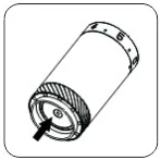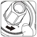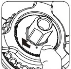 ![]() | 5. Aliniați punctul de pe piulița moletată cu un unghi de pe ax. |