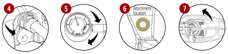 5. Atașați manometrul la tijă prin înșurubare în sensul acelor de ceasornic. Înșurubați complet, apoi orientați fața manometrului în poziție verticală.