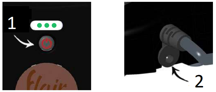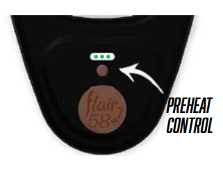 Cafetiera Flair 58 Plus 2 poate fi preîncălzită și apoi detașată de cablu pentru a putea prepara cafea departe de orice priză. Mai întâi, opriți butonul Preheat controller situat în bază.